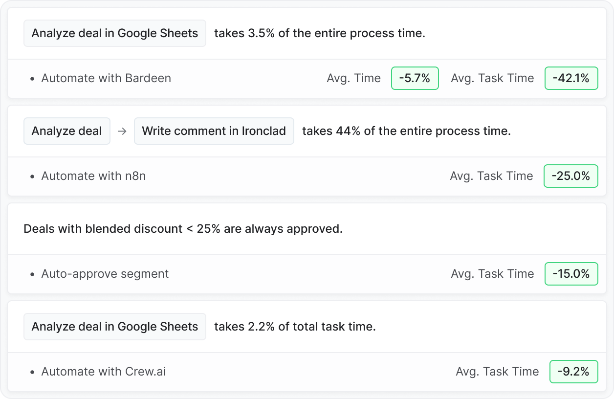 Discover workflows automatically to reveal hidden steps and inefficiencies.