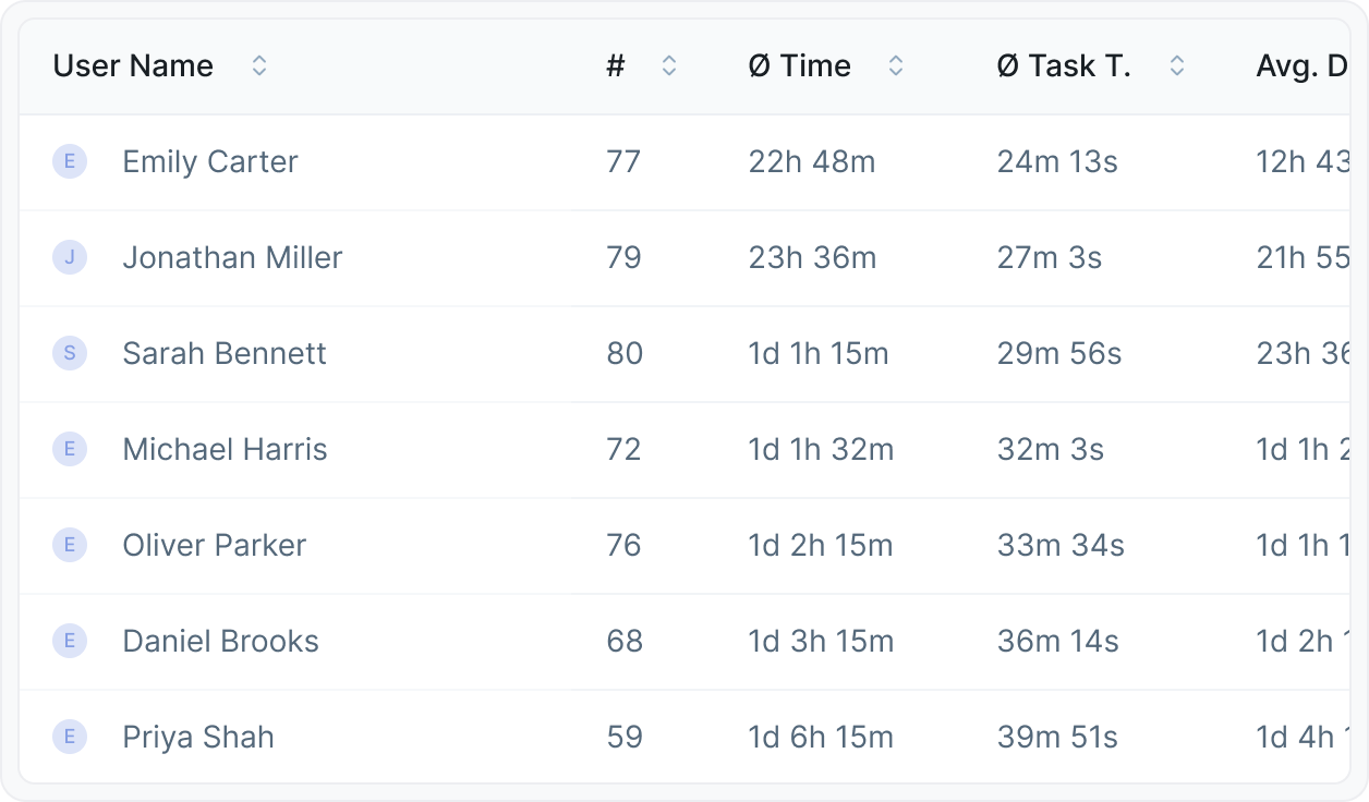 WIQ compares how different users execute the same workflow, highlighting the habits, shortcuts, and behaviors that make your best performers faster and more accurate. Use those insights to train the rest of the team and lift overall productivity.